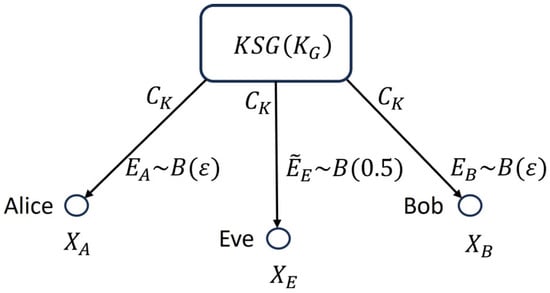 Therefore, the proposed CR source can be considered as a variant of Maurer’s satellite scenario, where by controlling the parameter , any desired BER between Alice’s and Bob’s sequences can be achived; see Figure 2.