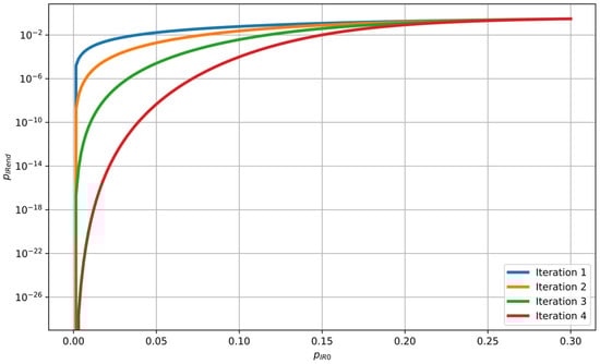 It should be noted that such precise control of the correlation properties of sequences generated in Maurer’s satellite scenario is practically impossible to achieve []. Moreover, if Eve does not possess the secret key , then the error probability between her sequence and Alice’s sequence is
