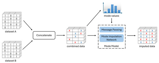). This comprehensive approach facilitates enhanced data quality, thereby supporting more robust analysis and model training outcomes. The process of mode imputation in the context of merging two datasets for enhancing data integrity has been illustrated on