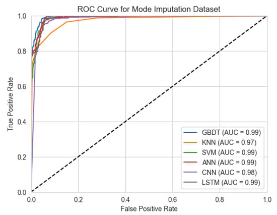 33]. Specifically, GBDT, SVM, CNN, and LSTM consistently achieved ROC-AUC values of 0.99 (see
