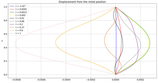 Numerical approximations of the displacement of the particles from the initial position .