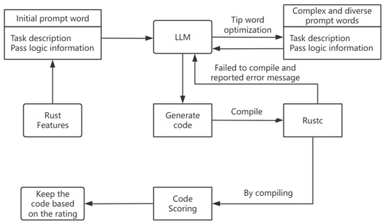 Based on the optimized prompt words, LLM generates a Rust test code in batches. To ensure code quality, the system has designed the following screening process:
