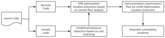 The core task of this module is to accurately identify code regions related to optimization, reduce the scope of testing, and enhance the efficiency of vulnerability detection. The system integrates static analysis, control flow analysis, stubs, rule matching, and other techniques to conduct multi-level screening of MIR, LLVM IR, and unsafe code blocks. The static analysis workflow is illustrated in Figure 3.