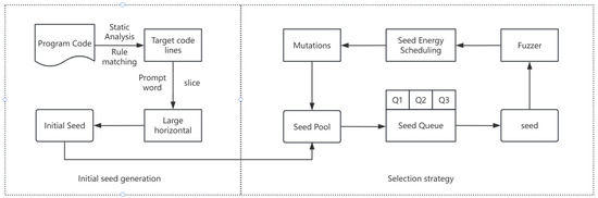 The directed fuzz testing module is one of the core innovations of RustOptFuzz. Its goal is to use optimization area information and high-quality initial seeds to efficiently discover misoptimization vulnerabilities. This module includes three parts: initial seed generation, seed queue management, and seed selection strategy. A directed fuzzy testing structure diagram based on optimized correlation is shown in Figure 4.