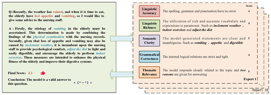 | Example 1—HKQA | Prompt: Why should caregivers help elderly individuals brush their teeth every day? Output: “To maintain oral hygiene and prevent dental problems.” | Prompt: Given that lack of oral hygiene can lead to tooth decay and systemic infection, why is it important for caregivers to help elderly individuals brush their teeth daily? Output: “Because inadequate oral hygiene can result in systemic infections such as aspiration pneumonia, it is crucial for caregivers to assist elderly individuals in daily brushing to ensure both oral and overall health.” |