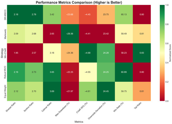requiring at least two units of expected return per unit of volatility and three units per unit of tail risk. This specification automatically favors portfolios with strong risk-adjusted returns and limited tail exposure.