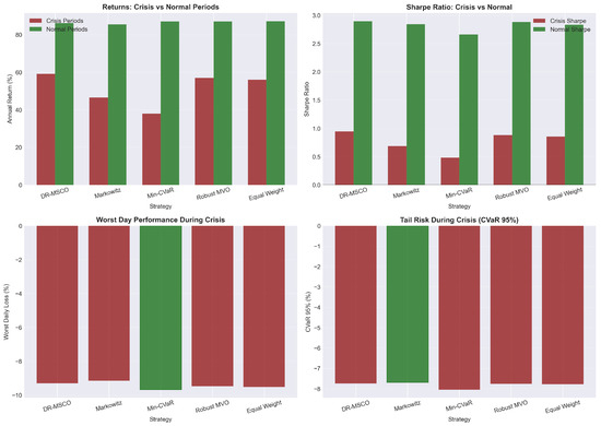 Crisis period analysis provides direct evidence for regime-dependent optimization requirements. The comparison between crisis and stable period returns shows systematic performance differences, with most companies exhibiting lower and more volatile returns during crisis episodes. This regime dependency invalidates stationarity assumptions underlying traditional optimization approaches and supports our adaptive cone selection methodology. The correlation structure among representative companies reveals moderate positive correlations ranging from 0.34 to 0.52, suggesting diversification benefits while avoiding the perfect correlation scenarios that would eliminate portfolio choice altogether.