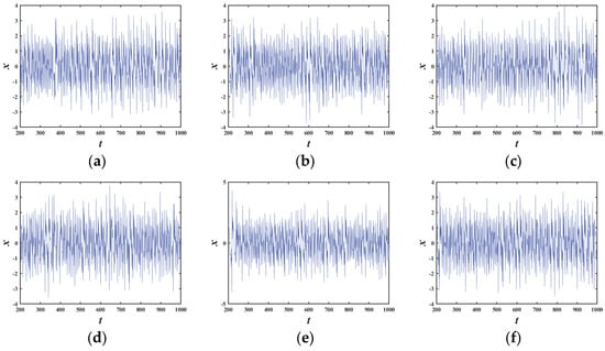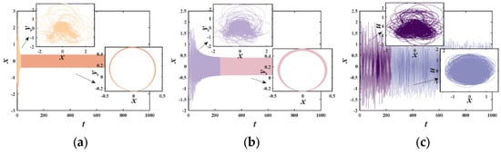 Meanwhile, the Poincaré cross sections and time series diagrams shown in Figure 5 and Figure 6 can further verify the quasi-periodic and chaotic states of the system.