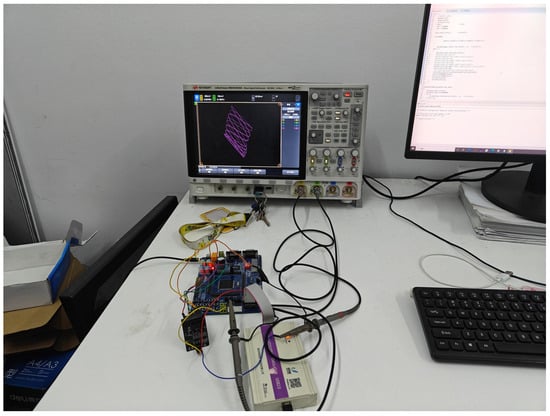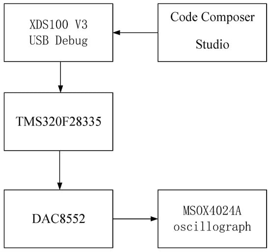 As digital processing technologies like DSP have matured, more chaotic systems are being implemented on DSP experimental platforms [,,]. In this paper, the DSP chip used is the TMS320F28335, which communicates with the external dual-channel DAC8552 via GPIO-emulated SPI protocol. The digital signals are converted to analog signals and displayed as 2D phase diagrams on an oscilloscope. Figure 26 illustrates the overall platform architecture, which comprises three functional layers: