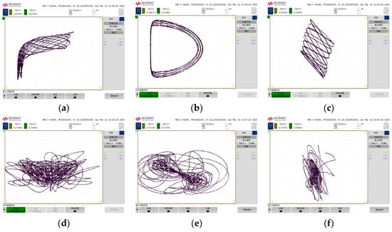 Figure 4 displays the phase space trajectory of system (3). The phase diagrams obtained from the DSP experimental platform with identical parameters are shown in Figure 28. A comparison shows that the phase diagrams from system (3) and the oscilloscope are almost identical, confirming the effective implementation of system (3) on the DSP. This demonstrates that system (3) has good physical realizability.