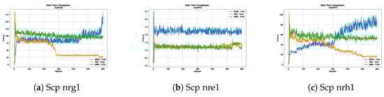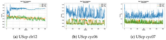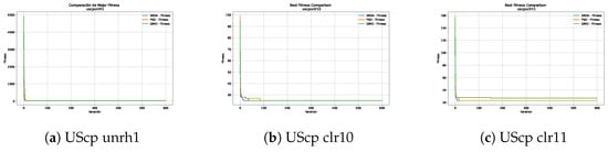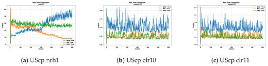 Time analysis of the instances UScp nrh1, UScp clr10 and UScp clr11.