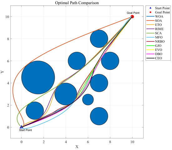 Furthermore, this work verified the value of the engineering application of CEO through two practical engineering problems: robot path planning and extraction of photovoltaic system parameters. In the robot path planning problem, the CEO algorithm not only quickly found the optimal path while avoiding obstacles but also demonstrated superior stability in path planning. In the photovoltaic system parameter extraction problem, the CEO algorithm’s optimization performance was outstanding, successfully optimizing model parameters and improving the efficiency of the photovoltaic system, thus validating the value of the engineering application of the algorithm. These application cases further demonstrate that CEO has broad application potential in practical engineering. As future research directions, CEO will be studied in image segmentation and celestial trajectory prediction to explore its potential in more fields.