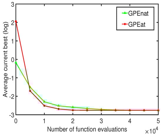 Convergence curves of GPEat and GPEnat on the STM640/36 model.