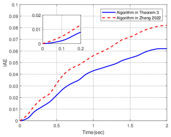 In order to further compare the advantages and disadvantages of the two algorithms, we introduce the following Integral Absolute Error (IAE) performance function to conduct a performance comparison analysis of the systems