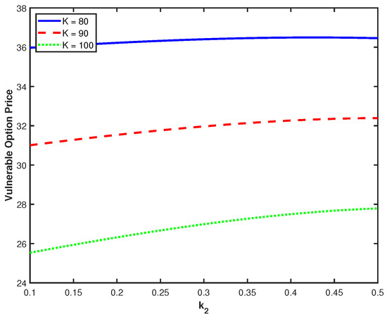 In this section, we present numerical examples to examine the behavior of vulnerable option prices under a two-factor stochastic interest rate model with stochastic volatility. We investigate how various model parameters affect option values and provide insights into the pricing dynamics of vulnerable options.