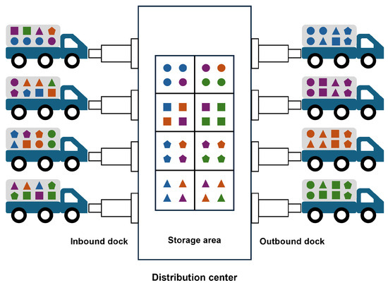 A cross-docking terminal is typically divided into three main areas: an inbound dock, where inbound trucks unload parcels; a sorting area, where parcels are classified; and an outbound dock, where sorted parcels are loaded onto outbound trucks, as illustrated in