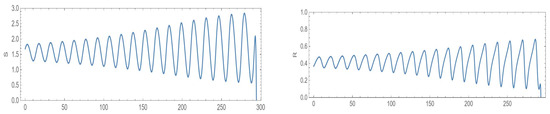 Figure 4 illustrates that when the time delay exceeds the critical value, τ = 1.5 > 1.39, the system becomes unstable, as shown by the increasing amplitude of oscillations over time.
