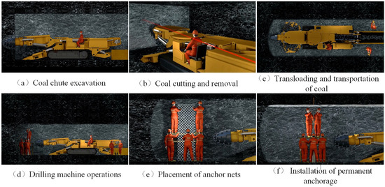 The conventional roadway construction process in coal mines comprises six sequential stages: undercutting, coal fragmentation, material haulage, bolt-hole drilling, mesh installation, and permanent anchoring. These discrete technical procedures necessitate manual execution in strict linear sequence to maintain safety protocols, as illustrated in Figure 1. This labor-intensive methodology not only requires substantial on-site personnel deployment but also compromises operational efficiency due to workflow interdependencies and process discontinuities.
