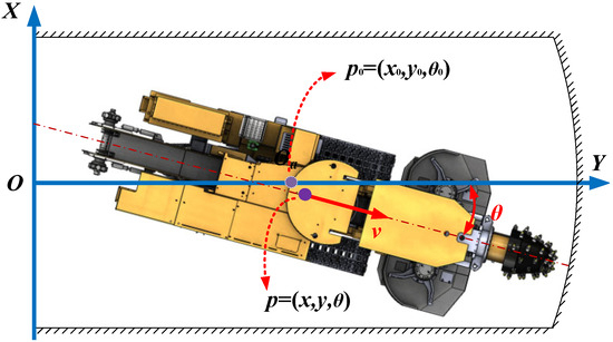 Meanwhile, the kinematic model of the tracked roadheaders in the two-dimensional plane tunnel can be expressed as follows: