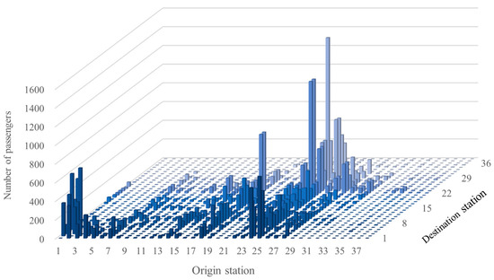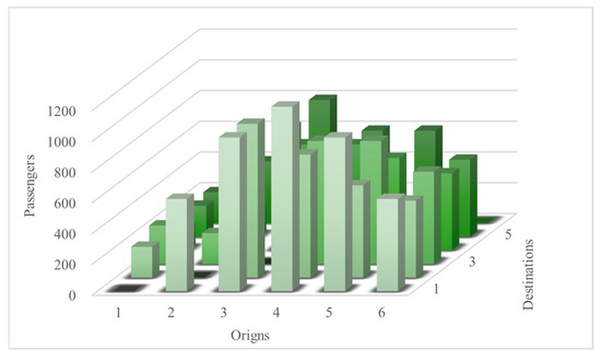 Figure 13. Passenger OD matrices in morning peak hour. - Trip Generation and Attraction Rates for Different Property Types: These rates are obtained from the ITE Trip Generation Manual.