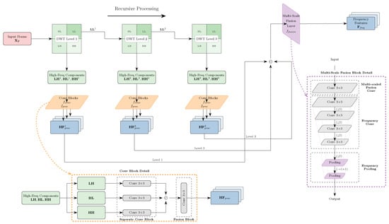 where . Each component of the high-frequency sub-band is then processed by a channel-wise convolutional blocks, consisting of three separate convolutional networks and one fusion network. For each high-frequency component in l-th level , we have: