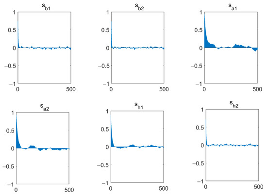 Based on the estimation results, Figure 3 shows the trend of autocorrelation coefficient changes of the estimated variables in the TVP-SV-SVAR model. The sample path of MCMC sampling is shown in Figure 4, and the posterior distribution of the MCMC simulated parameter samples is shown in Figure 5.