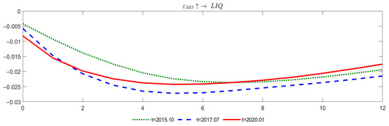 Impulse Responses of Liquidity to M0 Shocks at Different Time Points.
