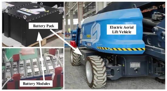 In practical engineering applications, batteries are typically deployed as battery packs in electric vehicles. To validate the effectiveness of the proposed method in applications, actual performance data from electric vehicles is utilized for testing purposes. In this subsection, the practicality of the proposed framework in real-world scenarios is evaluated by collecting operation data from two electric aerial lift vehicle (EALV) battery packs, as illustrated in Figure 7. The operating conditions of battery pack 1 and pack 2 from EALV models G01BB03 and G01JB01 are illustrated in Figure 8 and Figure 9, respectively. The operating condition data are collected on the basis of the complete battery pack assembly. While minor inconsistencies between individual cells can create a small self-balancing current (100–300 mA), its effect on SOC estimation is negligible. Given that the rated current of the packs exceeds 200 A, this balancing current accounts for less than 0.15% of the total current and does not significantly impact the results.