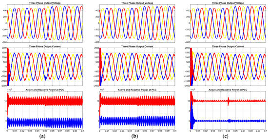 The three-phase system model [30] can be obtained by applying Kirchhoff’s laws as follows: