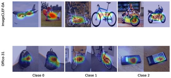 In addition to generalization and discriminability, interpretability has become a pivotal aspect of domain adaptation, especially in high-stakes applications where understanding model behavior is essential for fostering trust, transparency, and accountability [49]. In this context, latent space analysis has proven valuable for examining the structure of learned representations. Linear techniques such as Principal Component Analysis (PCA) offer computational efficiency but fall short in capturing the nonlinear relationships relevant across multiple domains [50]. In contrast, nonlinear methods like t-distributed Stochastic Neighbor Embedding (t-SNE) and Uniform Manifold Approximation and Projection (UMAP) are more effective in representing complex inter-domain structures [51]. UMAP, in particular, stands out for its ability to preserve both local and global structures, maintain stability under parameter variation, and scale efficiently—making it especially useful for visualizing semantic alignment across domains [52,53]. Moreover, interpretability is especially crucial in sensitive applications. Among post hoc methods, Gradient-weighted Class Activation Mapping (Grad-CAM) generates attention maps that highlight regions influencing model predictions, while its extension, Grad-CAM++, improves spatial resolution through higher-order derivatives, though it remains limited by nonlinear activation functions [54,55,56]. In domain adaptation, Grad-CAM++ has proven effective not only as an explainability tool but also for visually assessing semantic consistency across domains [57]. Other approaches, such as Layer-wise Relevance Propagation (LRP) and SHapley Additive exPlanations (SHAP), provide quantitative insights by assigning relevance scores to input features, aiding the identification of spurious patterns or conflicting decision rules [58]. The lack of interpretability methods specifically designed for transfer learning and domain adaptation remains a significant limitation, highlighting the need for more robust explanatory tools tailored to cross-domain scenarios [59].