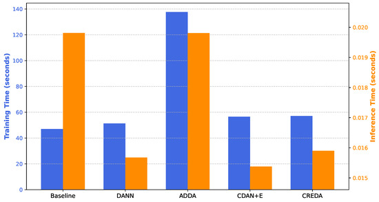 Experimental results across diverse visual adaptation scenarios demonstrate that CREDA consistently outperforms conventional methods such as DANN, ADDA, and CDAN+E in terms of predictive accuracy, representational quality, and interpretability. In particular, CREDA achieves the highest average accuracy across all datasets and architectures, with noticeable improvements when using deeper CNNs (ResNet-50) and attention-based models (ViT-Tiny). While most adversarial approaches experience performance degradation in these settings, CREDA remains robust and effective, as evidenced by the results presented in this study. Notably, CREDA maintains class separability even under complex distribution shifts and when the predicted labels in the target domain exhibit low confidence. The integration of UMAP- and GradCAM++-based visualizations offers valuable insights into the learned representations, reinforcing its applicability in real-world settings where traceability and semantic coherence are critical. From an implementation standpoint, CREDA does not require modifications to the classification loss function. Its confidence-aware weighting scheme and class-conditional regularization enhance robustness to pseudo-label noise and class imbalance. Moreover, its modular architecture facilitates seamless integration into existing deep learning pipelines.