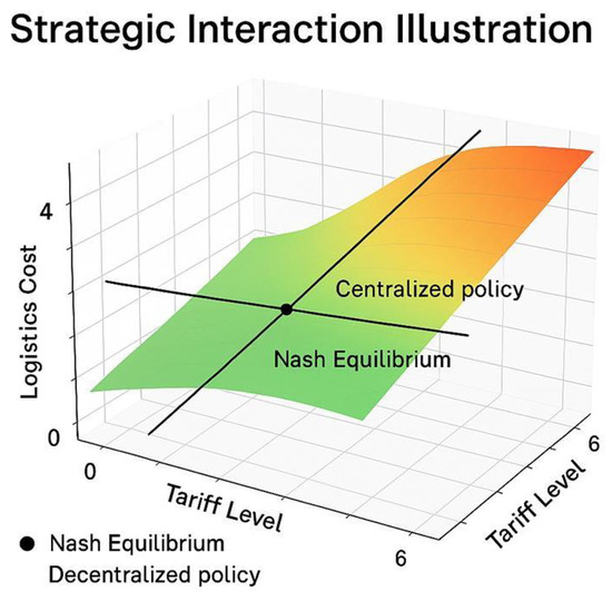 In practice, 3PL providers have emerged as critical actors in mitigating the adverse effects of such trade policies by enhancing supply chain flexibility and efficiency. For example, during periods of heightened trade tensions and tariff escalations, firms increasingly rely on 3PLs to redesign logistics networks, identify alternative sourcing options, and implement cost-saving strategies such as consolidation and route optimization. This real-world behavior validates the model’s identification of 3PLs as pivotal intermediaries whose participation can internalize coordination externalities and partially offset tariff-induced inefficiencies [1,2,5,6,17,20,23].