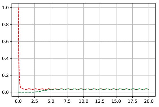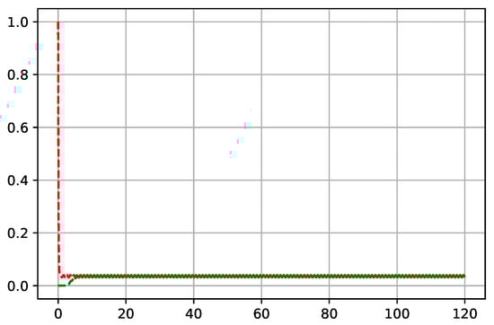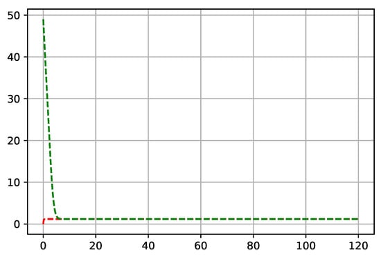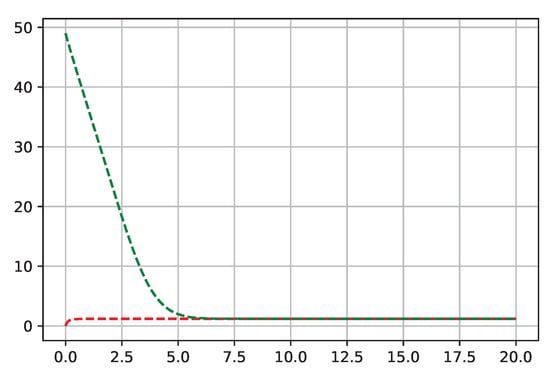 Depending on the behavior of the exponent and the infinite sum, the value of the right part of (11) may go down to 0 as , or may grow as t increases. The assumptions made so far seem to be insufficient to come up with the exact conditions that would allow one to distinguish these cases. Therefore, we resort to the analysis of each case separately, which will clarify what is being missed.