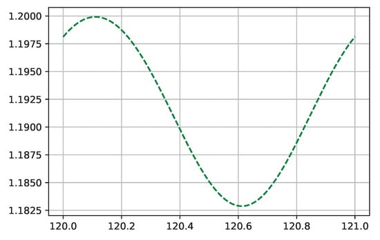 As the third example, we consider the classic possibly inhomogeneous queue (see, for example, Model 3 in []). The arrival rate is denoted by , and stages of the Erlang service time are exponentially distributed with the parameter . The infinitesimal matrix for the QBD process (excluding the state when the queue is empty, which does not impact the analysis of ergodicity bounds) (—the queue-size; —the Erlang stage) has a block structure