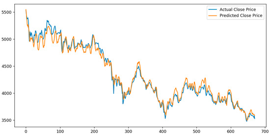 In the testing set, the predicted values of the MHABiLSTM model closely followed the actual stock price trends, demonstrating satisfactory alignment in overall movement (see Table 4). The model achieved an RMSE of 45.883 and an R2 of 0.959, indicating robust nonlinear modeling capabilities. However, certain discrepancies were observed in local short-term fluctuations, suggesting that the model may still have limitations in capturing rapid, high-frequency variations.