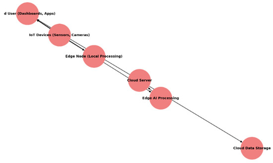 The figure below (Figure 2) illustrates how IoT devices (sensors and actuators) communicate through edge nodes and cloud servers via 5G, ensuring real-time responses and efficient data management.