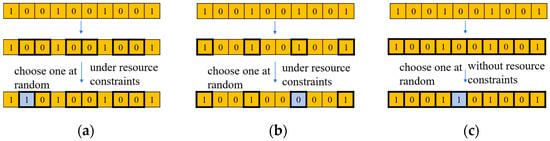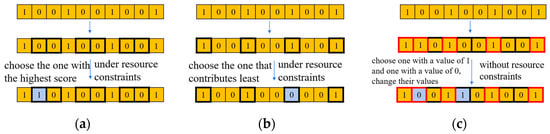 Figure 7. Schematic diagram of the mutation operations: (a) add_backup, (b) remove_backup, and (c) random_flip.- add_backup