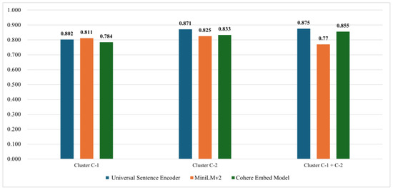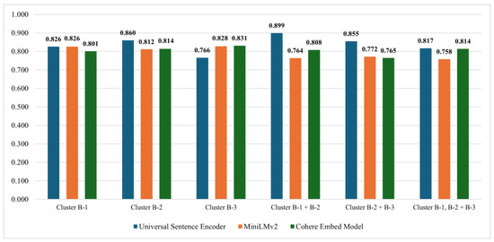 - RQ3 (Reliability vs. structural complexity). Given identical inputs and prompts, to what extent do two LLMs produce convergent topic interpretations, and does topic structure complexity (single versus combined clusters) systematically affect cross-model similarity?Operationalization: Sentence-level cosine similarity using multiple embedding models, with statistical tests for differences by cluster configuration.