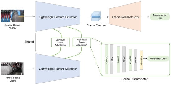 which minimizes the reconstruction loss of the source scene video frame while maximizing the probability that the target scene video frame is predicted as the source scene video frame. The general flow of the algorithm is shown in Algorithm 1. The multi-level scene adaptation method is preferred in complex industrial environments to enhance sensitivity to both global and local features.