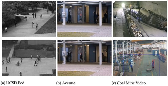 - Hasan, M.; Choi, J.; Neumann, J.; Roy-Chowdhury, A.K.; Davis, L.S. Learning temporal regularity in video sequences. In Proceedings of the IEEE Conference on Computer Vision and Pattern Recognition, Las Vegas, NV, USA, 27–30 June 2016; pp. 733–742. [Google Scholar]