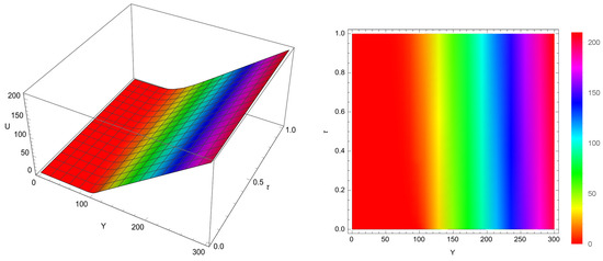 Due to the enhanced influence of transaction costs introduced through the increased value of a, the solution exhibits noticeable deviations from the classical linear case. The numerical outcomes, obtained via the proposed high-order scheme, are depicted graphically in Figure 3 and Figure 4. These illustrations further substantiate the efficacy and adaptability of our method when applied to more complex financial models incorporating stronger nonlinearities.