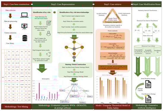Based on traditional CBR, this section applies D-S evidence theory, the public safety triangle theory, and new generative AI technologies to each key link of CBR to enhance the accuracy of CBR. The following Figure 2 is the method flowchart of this article.