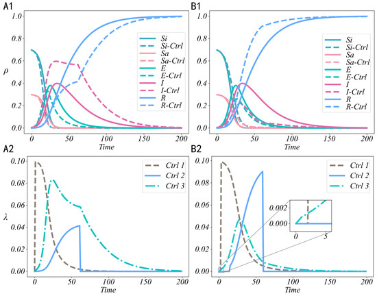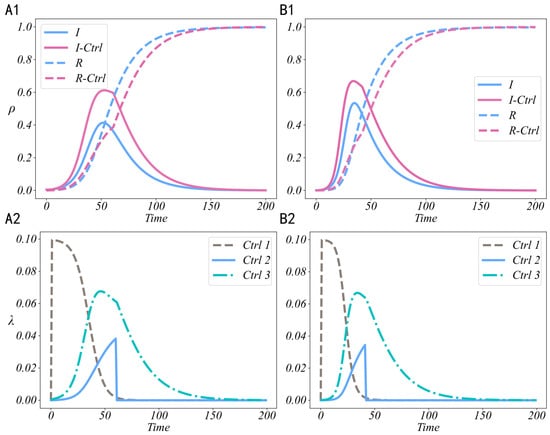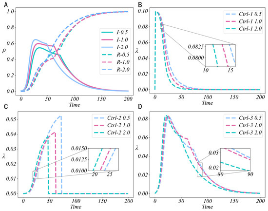 In online social hypernetworks, , , and are adjusted by administrators at any time t. Considering the current technological limitations, especially under constrained intervention costs, the intensity of control cannot be infinite. Moreover, in practical operations, control strategies are not triggered in a fully real-time manner throughout the entire process. Since the implementation of control strategies typically depends on the current state of the system and administrative decision-making, their activation is subject to specific conditions. For example, in certain scenarios, when the number of disseminators of negative information becomes excessive, additional intervention may be required; whereas in other cases, when the diffusion of negative information remains at a low level, the control strategies may not be activated immediately. Therefore, the control strategies are dynamically triggered during implementation according to the evolving real-time state of the system.
