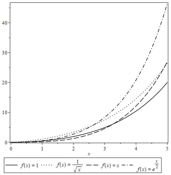 The properties of the function  are influenced by the properties of the Whittaker functions for different values of the parameters  and , as well as by the characteristics of the function . Before presenting a solution to the inhomogeneous Whittaker equation, we will first investigate the function  for various parameter values and different forms of .