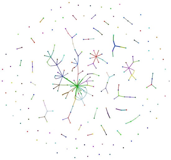 Dynamic knowledge graph constructed based on entity relationships. In this graph, nodes are colored according to their entity type (e.g., organization, person, location, event). The thickness of an edge represents the strength or frequency of the relationship, with thicker lines indicating stronger or more frequent connections, and thinner lines indicating weaker or less frequent ones.