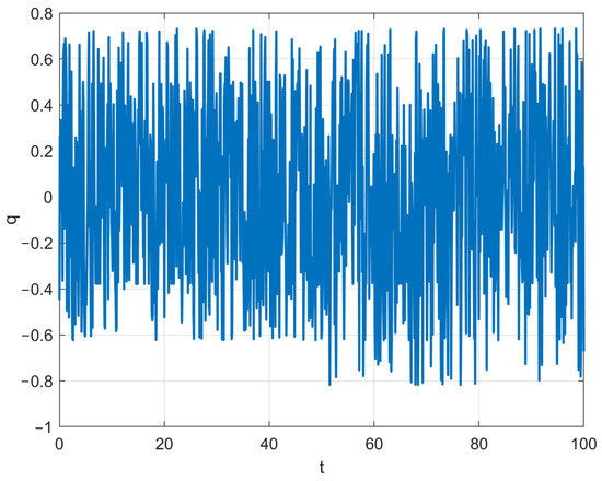 where is represented using Equation (20). The function value of with respect to the increase in the iteration number is depicted in Figure 3. As can be observed from Figure 3, the value of tends to exhibit a chaotic and fluctuating state. Meanwhile, after the iteration process reaches its mid-point, the fluctuations in the value of become more pronounced. The setting of this value is primarily aimed at mitigating the issue of the algorithm easily falling into local optima caused by fractional-order weighting. By introducing certain fluctuations in the weighting process through , the risk of getting stuck in local optima can be reduced. Furthermore, these fluctuations should be more significant in the later stages of iteration compared to the early stages. This is precisely the reason behind our design of the value-determination method for .