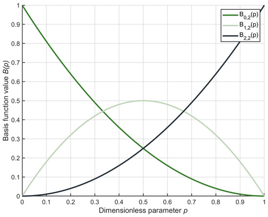 Moreover, the second-order Bernstein polynomial is explicated as Equation (21), and its graph is visualized in Figure 4.