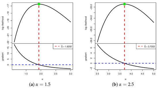 The closed-form expressions for the integrals and for cannot be obtained analytically in terms of incomplete gamma functions. Therefore, it is often preferable to compute the MLE using the Newton–Raphson () iterative method. For this purpose, the method is implemented via the maxNR command, which is available in the maxLik package (by Henningsen and Toomet [20]).