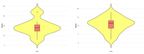Violin diagrams of Data-1 (left) and Data-2 (right).