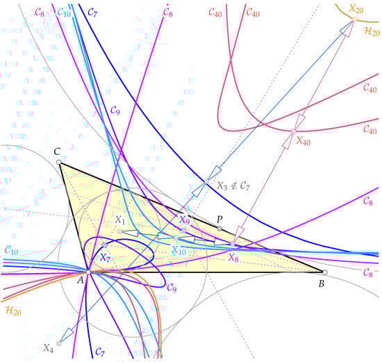 - Kimberling, C. Encyclopedia of Triangle Centers. Available online: https://faculty.evansville.edu/ck6/encyclopedia/ETC.html (accessed on 1 June 2025).